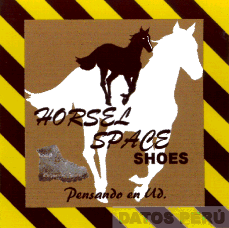 LA ETIQUETA CUADRANGULAR DE FONDO COLOR CAOBA CON UN MARCO DE RAYAS DIAGONALES EN COLOR NEGRO Y AMARILLO CONFORMADA POR LA DENOMINACION HORSEL SPACE SHOES ESCRITA EN LETRAS CARACTERISTICAS DE COLOR NEGRO, LA FIGURA ESTILIZADA DE DOS CABALLOS EN COLORES NEGRO Y BLANCO, EL DISEÑO DE UN CALZADO EN COLOR PLOMO DONDE SE CONSIGNAN LAS PALABRAS HORSEL Y CALZADO DEL FUTURO Y EN LA PARTE INFERIOR LA FRASE PENSANDO EN USTED; CONFORME AL MODELO ADJUNTO,