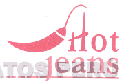 El logotipo conformado por la denominación HOT JEANS escrita en letras características, acompañada por la representación estilizada de una figura en forma de ají en el lado derecho; por una línea punteada y una línea horizontal en la parte inferior, todo en color rojo; conforme al modelo adjunto