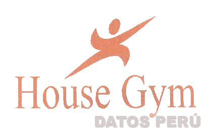 El logotipo conformado por la denominación HOUSE GYM escrita en letras características, en la parte superior se aprecia la representación estilizada de una persona con los brazos y piernas extendidas en color anaranjado; conforme al modelo adjunto