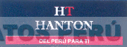 El logotipo rectangular conformado por la denominación HT HANTON escrita en letras características y debajo la frase DEL PERÚ PARA TI escrita en letras características dentro de una figura rectangular; todo en los colores azul, rojo y blanco; conforme al modelo adjunto.