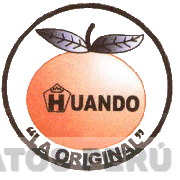 La representación de una naranja en la que se aprecia la denominación HUANDO, cuya letra H está coronada y enmarcada dentro de una figura geométrica poligonal, todo dentro de un círculo, y la denominación LA ORIGINAL escrita en letras características entre comillas, todo en los colores anaranjado y negro; conforme al modelo adjunto