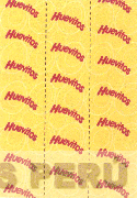 La envoltura conformada por la denominación HUEVITOS escrita en letras características, repetidas veces, sobre un fondo conformado por figuras ovoides características, en la combinación de colores negro, rojo y amarillo; conforme al modelo adjunto.