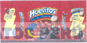 La envoltura conformada por la denominación HUEVITOS SABOR DE MARRASCHINO escrita en letras características, figuras caricaturescas, y demás figuras irregulares y leyendas alusivas al producto, todo en la combinación de colores rojo, amarillo, azul, blanco, negro y marrón; conforme al modelo adjunto.