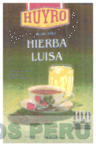 LA ETIQUETA CONTENIENDO LA DENOMINACION HUYRO ESCRITA EN LETRAS ESTILIZADAS DE COLOR ROJO, SOBRE UN FONDO AMARILLO DE FORMA GEOMETRICA CON SEIS LADOS DENTADOS, ENSANCHANDO EN LA PARTE CENTRAL EN SENTIDO VERTICAL LA DENOMINACION HIERBA LUISA, SIN REIVINDICAR, Y EN LA PARTE INFERIOR SE ENCUENTRA LA FIGURA DE UNA TAZA Y UN VASO, TODO EN LOS COLORES ROJO, AMARILLO, VERDE Y ANARANJADO, CONFORME AL MODELO,
