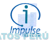 El logotipo conformado por la denominación IMPULSE TELECOM escrita en letras características y la letra I estilizada dentro de un círculo incompleto, como fondo se aprecia diversas figuras irregulares, todo en los colores verde, azul y celeste; conforme al modelo adjunto