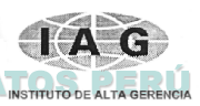 El logotipo conformado por la denominación INSTITUTO DE ALTA GERENCIA escrita en letras características, en la parte superior se aprecia una figura ovalada entrecortada por diversas líneas curvas, el cual contiene las letras I A G escritas en forma característica; todo en color plomo y negro; conforme al modelo adjunto