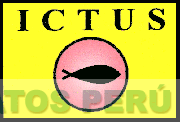 La etiqueta rectangular conteniendo la denominación ICTUS escrita en letras características, debajo la representación de una figura circular conteniendo la figura estilizada de un pez, en los colores amarillo, rosado y negro; conforme al modelo adjunto