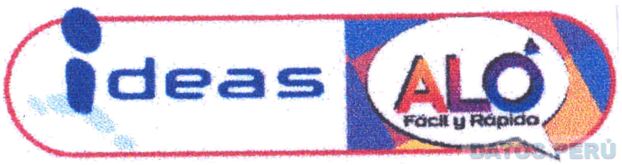 La denominación IDEAS escrita en letras características donde la letra I se ve reflejada como sombra tanto al lado izquierdo como derecho; y la denominación ALÓ FÁCIL Y RÁPIDO en letras características encerradas en un globo de diálogo, todo dentro de una figura cortada por la mitad separando ambas denominaciones y en los colores azul, celeste, rojo, amarillo, anaranjado, lila, violeta, azul y negro; conforme al modelo adjunto