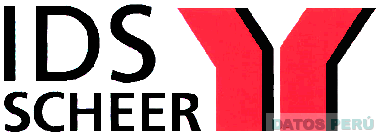 La denominación IDS SCHEER escrita en letras características y el diseño estilizado de dos franjas rectas verticales que se abren hacia la izquierda y derecha, formando la letra Y estilizada, todo en los colores magenta y negro; conforme al modelo adjunto