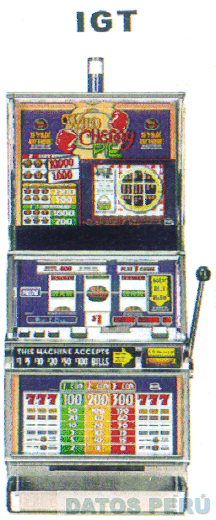 LA DENOMINACION IGT Y EL DISEÑO BIDIMENSIONAL DE UNA MAQUINA TRAGAMONEDA DIVIDIDO EN TRES TIPOS ESPECIALES DE DISEÑO; EN LA PARTE SUPERIOR LAS DENOMINACIONES WILD, CHERRY, PIE; ASI COMO LOS DISEÑOS DE FRUTAS, EN LA PARTE MEDIA APARECEN TRES VENTANAS PARALELAS CON JUEGOS DETERMINADOS Y EN LA PARTE INFERIOR CINCO COLUMNAS CON NUMEROS Y FIGURAS EN LOS COLORES BLANCO, VERDE, AMARILLO, ROJO Y BLANCO, SEGUN MODELO ADJUNTO