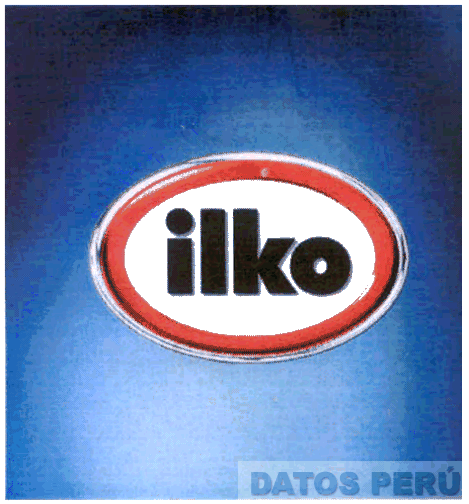 LA DENOMINACION ILKO ESCRITA EN LETRAS CARACTERISTICAS DENTRO DE UNA FIGURA ELIPTICA, TODO DENTRO DE UNA FIGURA CUADRANGULAR, EN LOS COLORES AZUL, ROJO, NEGRO, BLANCO Y GRIS PLATA; CONFORME AL MODELO ADJUNTO
