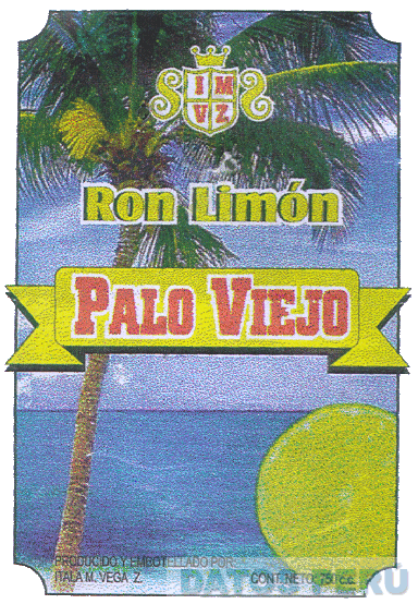 LA ETIQUETA DE BORDE COLOR NEGRO, CONTENIENDO LA FIGURA DE UN ESCUDO CORONADO CONTENIENDO LAS LETRAS I, M, V Y Z, EN LOS COLORES ROJO Y AMARILLO, EN LA PARTE CENTRAL SE APRECIA LA DENOMINACION PALO VIEJO ESCRITA EN LETRAS CARACTERISTICAS DE COLOR ROJO SOBRE LA FIGURA RECTANGULAR DE COLOR AMARILLO, EN LA PARTE INFERIOR DE LA ETIQUETA SE APRECIA LA FIGURA DE LA MITAD DE UN LIMON EN COLOR AMARILLO, EL FONDO DE LA ETIQUETA ESTA CONFORMADO POR LA FIGURA DE UNA PALMERA, EL MAR Y EL CIELO; EN LOS COLORES MARRON, VERDE, AZUL Y CELESTE; CONFORME AL MODELO ADJUNTO,