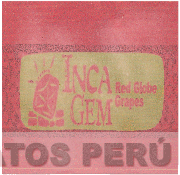 La denominación INCA GEM RED GLOBE GRAPES y logotipo (se reivindica colores), conforme al modelo