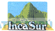 El logotipo conformado por la denominación INCASUR escrita en letras características, en color blanco con borde negro, sobrepuesta a la figura estilizada de la ciudadela de Machupicchu, en colores verde claro, verde oscuro, celeste, negro, blanco, amarillo, anaranjado y marrón; conforme al modelo adjunto