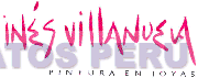 La denominación INES VILLANUEVA PINTURA EN JOYAS escrita en letras características, en los colores rojo y negro; conforme al modelo adjunto