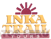 El logotipo conformado en la parte superior por la figura estilizada de un sol, en medio se aprecia la denominación INKA TRAIL escrita en letras características y en la parte inferior se aprecia una figura rectangular y en su interior la denominación TOURS escrita en letras características; todo en los colores amarillo, blanco y rojo conchevino; conforme al modelo adjunto
