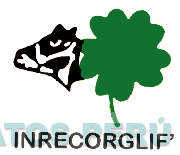 El logotipo conformado por la denominación INRECORGLIF' escrita en letras características, la representación estilizada de un trébol y la representación estilizada de la cabeza de una vaca; en los colores negro, blanco y verde; conforme al modelo adjunto