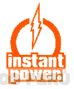 El logotipo conformado por la denominación INSTANT POWER escrita en letras características debajo de un círculo cruzado por la figura de un rayo, todo en color anaranjado; conforme al modelo adjunto