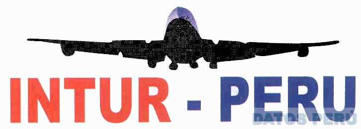 La figura estilizada de un avión de color azul en posición de despegue, debajo la denominación INTUR-PERU en los colores rojo y azul respectivamente; conforme al modelo adjunto