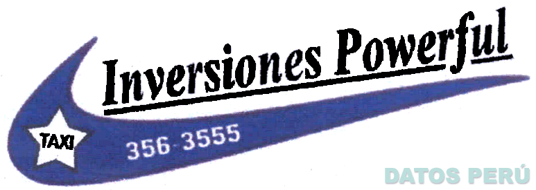 El logotipo conformado por la denominación INVERSIONES POWERFUL escrita en letras características y subrayada, la cual se encuentra sobre una figura geométrica irregular que contiene una estrella y la palabra TAXI escrita en letras características; sin reivindicar los números 356-3555; en los colores azul, blanco y negro; conforme al modelo adjunto