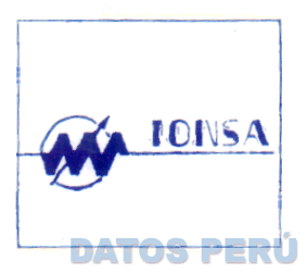 La denominación IONSA escrita en forma característica sobre una línea recta que constituye la prolongación de la figura ubicada al extremo izquierdo, representativa de un ion atravesado diagonalmente por una flecha sobre el fondo de una figura circular (color azul), conforme al facsímil adjunto