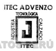 El logotipo conformado por la denominación ITEC ADVENZO escrita en letras características, debajo de la cual se aprecia una figura cuadrangular conteniendo la letra J y bordeada por las denominaciones INDUSTRIA, TECNOLÓGICA, CALZADO e ITEC escritas en letras características; conforme al modelo adjunto