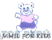 El logotipo conformado por la denominación JAMIL FOR KIDS escrita en letras características y la representación estilizada de un oso en la combinación de colores rosado y lila; conforme al modelo adjunto