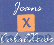 La etiqueta que contiene la denominación JEANS CABALXCESO escrita en letras características y la representación de la letra X estilizada, encerrada dentro de un cuadrado, en los colores blanco, anaranjado y azul; conforme al modelo adjunto
