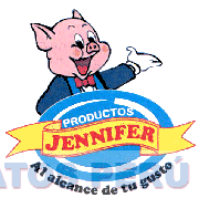 El logotipo conformado por la denominación JENNIFER escrita en letras características dentro de una cinta ondulante, todo dentro de una figura ovoidal, en la parte superior se aprecia la figura estilizada de un chanchito con la mano extendida, todo en la combinación de colores azul cian, rosado, amarillo, rojo, negro, azul, blanco; conforme al modelo adjunto