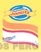 El logotipo de forma rectangular, conformado por la denominación JENNIFER escrita en letras características dentro de una cinta ondulante, todo dentro de una figura ovoidal, en la parte inferior se aprecian cintas ondulantes, todo en la combinación de colores azul cian, amarillo, rojo, anaranjado, magenta, blanco; conforme al modelo adjunto