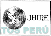 El logotipo conformado por la denominación JHIRE escrita en letras características y la figura estilizada de una paloma volando sobre la figura estilizada de un mundo; conforme al modelo adjunto