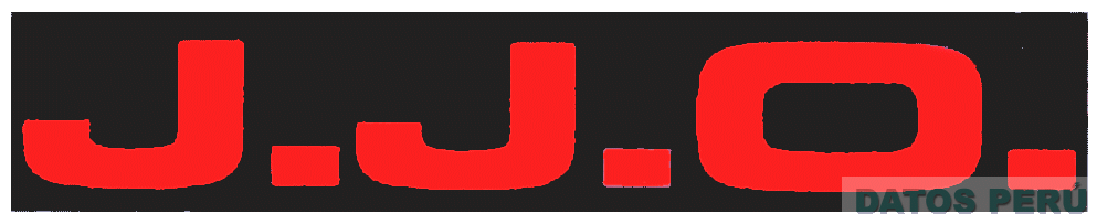 La denominación J.J.O. escrita en letras características, dentro de una figura rectangular; en color rojo sobre fondo negro; conforme al modelo adjunto