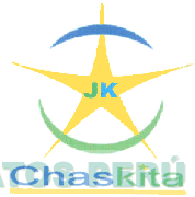 El logotipo conformado por la denominación JK CHASKITA escrita en letras características subrayado y acompañado de una estrella rodeada por dos medias lunas, todo en colores amarillo, verde, azul y celeste; conforme al modelo adjunto