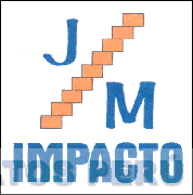 El logotipo conformado por la denominación JM IMPACTO escrita en letras características, donde se aprecia las letras J y M separadas por la representación de una escalera de ladrillos; en los colores anaranjado, azul y blanco (sin reivindicar color negro); conforme al modelo adjunto