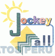 El logotipo conformado por la denominación JOCKEY MALL escrita en letras características; sobre la letra J se aprecia la representación estilizada de un sol, y la letra M esta conformada por una figura irregular con tres líneas en zig zag; debajo de las letras ALL se aprecia una línea que se prolonga hasta la letra J, todo en los colores verde, amarillo, azul, azul oscuro, rosado, anaranjado, morado; conforme al modelo adjunto