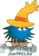 El logotipo conformado por la representación humanizada de un pompón y la denominación JONYPELOS escrita en letras características; en los colores marrón en distintas tonalidades, azul, negro, blanco, anaranjado y gris; conforme al modelo adjunto