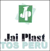 El logotipo conformado por la denominación JAI PLAST escrita en letras características, sobre la cual se aprecia dos figuras rectangulares sobrepuestas que contienen las letras J y P en forma característica, en los colores blanco, verde en distintas tonalidades y negro; conforme al modelo adjunto