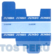 La denominación JUMBO END WRAPS LUXOR y empaque (se reivindican colores), conforme al modelo