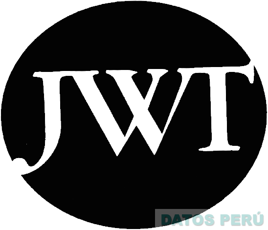 Las letras blancas estilizadas JWT dentro de una figura circular con fondo en color negro; conforme al modelo adjunto
