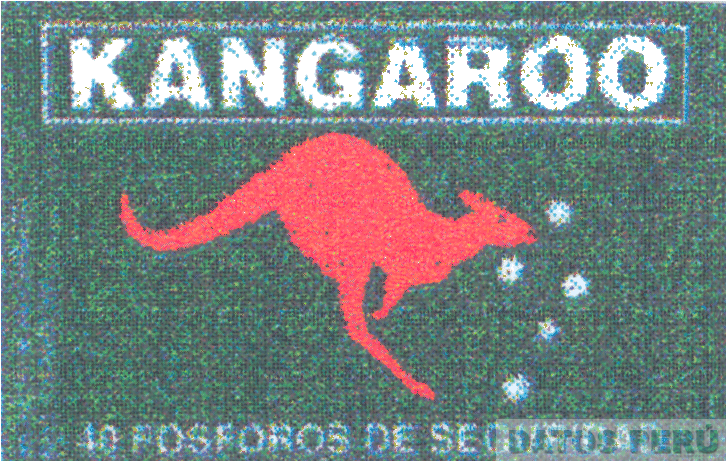 La etiqueta rectangular de color verde que contiene la denominación KANGAROO escrita en letras características de color blanco, dentro de una figura rectangular con bordes de color blanco, en la parte central aparece la figura estilizada de un canguro en color rojo y cinco estrellas, debajo aparece la frase 40 FOSFOROS DE SEGURIDAD, la cual no se reivindica; conforme al modelo adjunto
