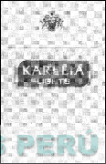 La etiqueta rectangular conformada en la parte superior por un escudo y en el medio se aprecia la denominación KARELIA LIGHTS escrita en letras características al interior de una figura rectangular con bordes redondeados; sin reivindicar colores; conforme al modelo adjunto