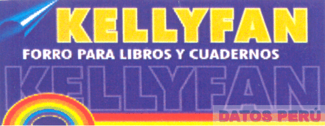EL LOGOTIPO RECTANGULAR CON LA DENOMINACION KELLYFAN, QUE SE REPITE NUEVAMENTE EN LA PARTE INFERIOR, AMBAS ESCRITAS EN LETRAS CARACTERISTICAS Y LA REPRESENTACION ESTILIZADA DE UN ARCO IRIS; TODO EN LA COMBINACION DE COLORES AMARILLO, AZUL, BLANCO, VERDE, ANARANJADO, ROJO, SOBRE UN FONDO MORADO; CONFORME AL MODELO