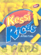 El logotipo conformado por la denominación KESSI RICAS escrita en letras características, la representación de una figura geométrica que lleva la palabra KESSI, junto a ella, en la parte inferior está la palabra RICAS, asimismo, se aprecian figuras en forma de barritas de maíz, en la parte superior e inferior del nombre y demás leyendas alusivas al producto, todo en los colores rojo en distintas tonalidades, azul, celeste, blanco, amarillo, y en la parte superior derecha se aprecia una figura ovalada que contiene la denominación LAUREL escrita en letras características; conforme al modelo adjunto