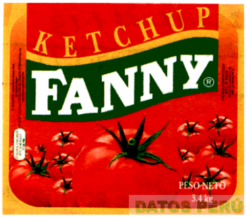 EL LOGOTIPO CONSTITUIDO POR LA DENOMINACION KETCHUP FANNY EN LETRAS CARACTERISTICAS, DONDE LA PALABRA FANNY SE ENCUENTRA ESCRITA EN COLOR BLANCO SOBRE UNA BANDEROLA FLAMEANTE DE COLOR VERDE, EN LA PARTE SUPERIOR SE ENCUENTRA LA PALABRA KETCHUP, EN COLOR AMARILLO SOBRE UN FONDO ROJO, EN LA PARTE INFERIOR DEL LOGOTIPO SE OBSERVA LA FIGURA COLORIDA DE VARIOS TOMATES SOBRE UN FONDO ROJO; TODO CON UN BORDE AMARILLO; CONFORME AL MODELO ADJUNTO,