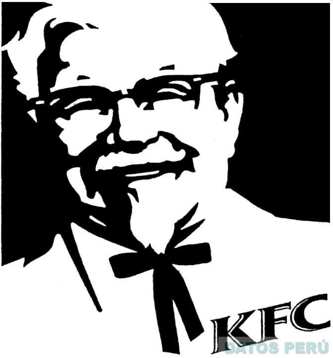 La denominación KFC escrita en letras características, y el diseño del rostro de un hombre luciendo anteojos, barba y corbatín, todo dentro de una figura cuadrangular incompleta; conforme al modelo adjunto