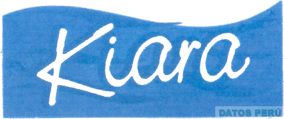 El logotipo conformado por la denominación KIARA escrita en letras características dentro de una figura irregular ondulante, en los colores blanco y azul; conforme al modelo adjunto