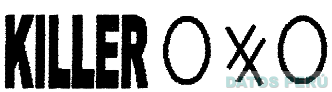 La denominación KILLER escrita en letras características, seguida de la figura que se compone de dos elipses separados por dos líneas paralelas oblicuas cortados por otra línea oblicua opuesta; conforme al modelo adjunto