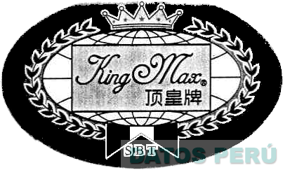 LA DENOMINACIÓN KING MAX ACOMPAÑADO CON TRES LETRAS CHINAS EN LA PARTE INFERIOR DERECHA, TODO ENCERRADO EN UN RECTÁNGULO QUE ESTA CONTENIDO DENTRO DE UNA FIGURA OVALADA CON CUADRÍCULAS EN FORMA DE UN ELIPSE Y UNA CORONA EN LA PARTE SUPERIOR, EN LA PARTE INFERIOR UN BANDERÍN CON LAS LETRAS SBT Y LOS LATERALES CON DOS RAMAS DE LAUREL; CONFORME AL MODELO ADJUNTO