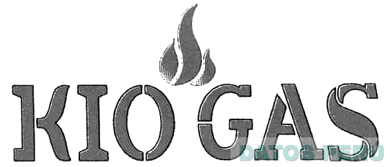 La denominación KIO GAS escrita en letras características en letras mayúsculas, entre ambas palabras la representación estilizada de llamas de fuego (sin reivindicar colores); conforme al modelo adjunto
