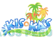 El logotipo conformado por la denominación KIS KAS escrita en letras características, acompañada de la representación estilizada de tres palmeras unidas por la representación estilizada de un lazo, y en la parte inferior se aprecia la denominación HOTEL & PARQUE ACUÁTICO escrita en letras características sobre una línea ondeada, y en su extremo izquierdo se aprecia la representación estilizada de seis gotas de agua, todo en la combinación de colores verde, amarillo, anaranjado, celeste y azul; conforme al modelo adjunto